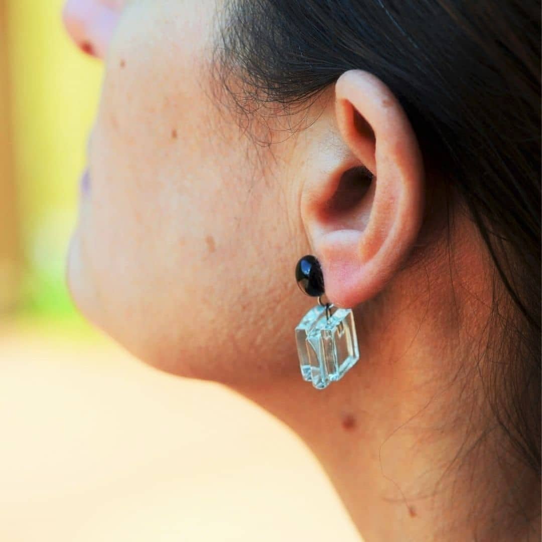 Son unas piezas elegantes y con mucha clase, ideales para verte distinguida en cualquier ocasión. La transparencia y pureza del vidrio le dan un aspecto ligero y a la vez muy glamuroso. Tiene un peso contenido y como el gancho es de plata de ley no te causarán problemas de alergia.